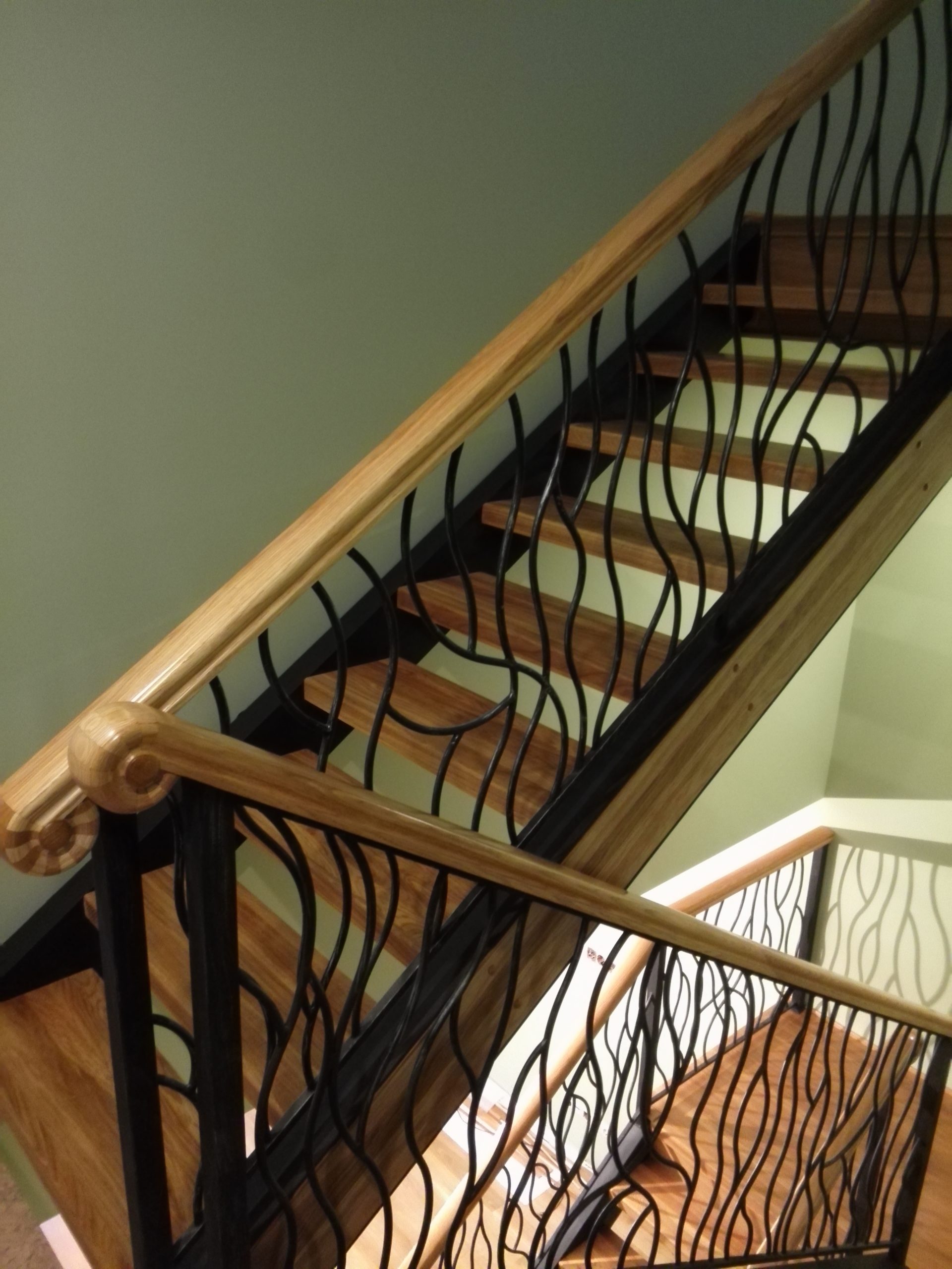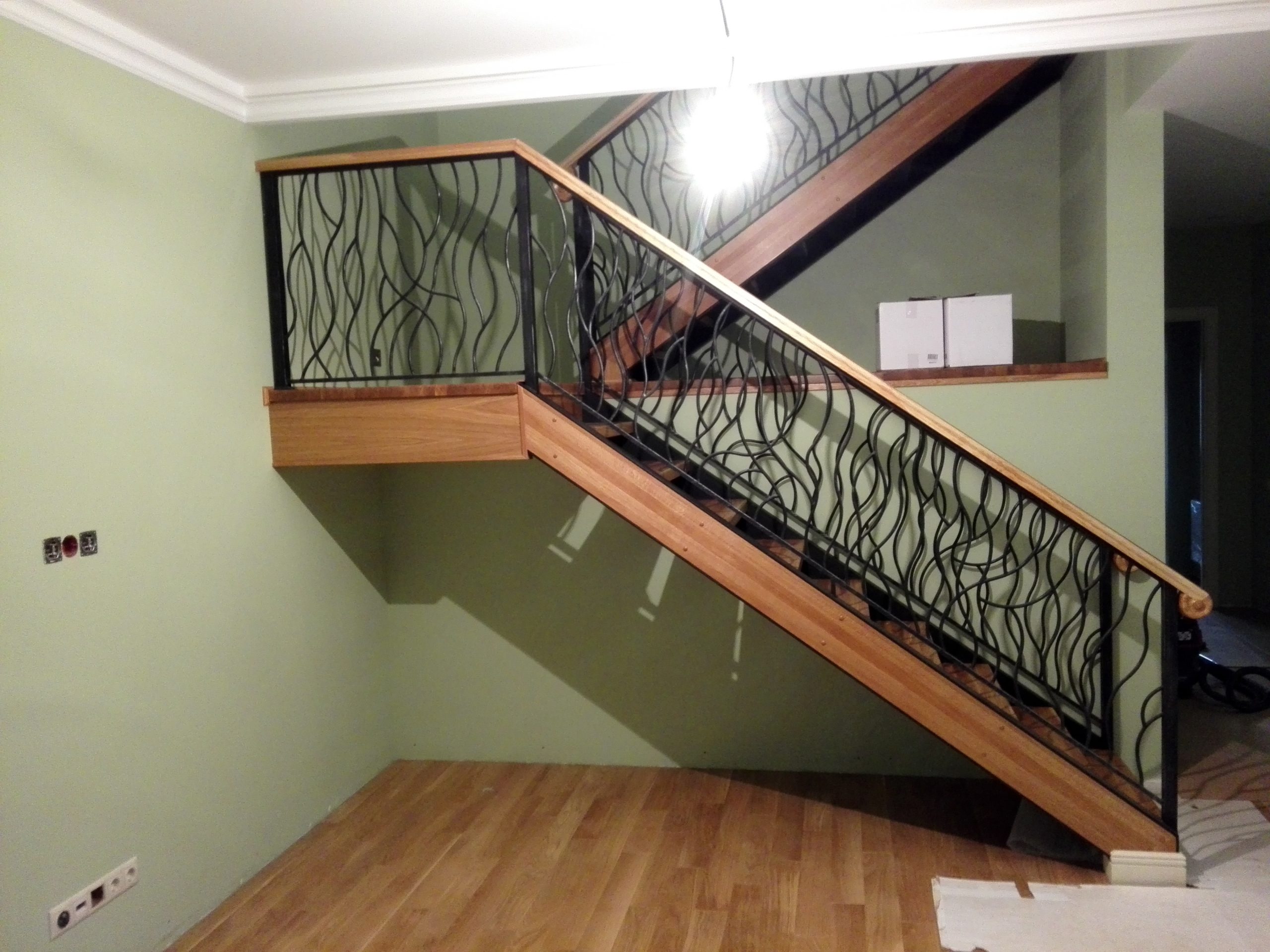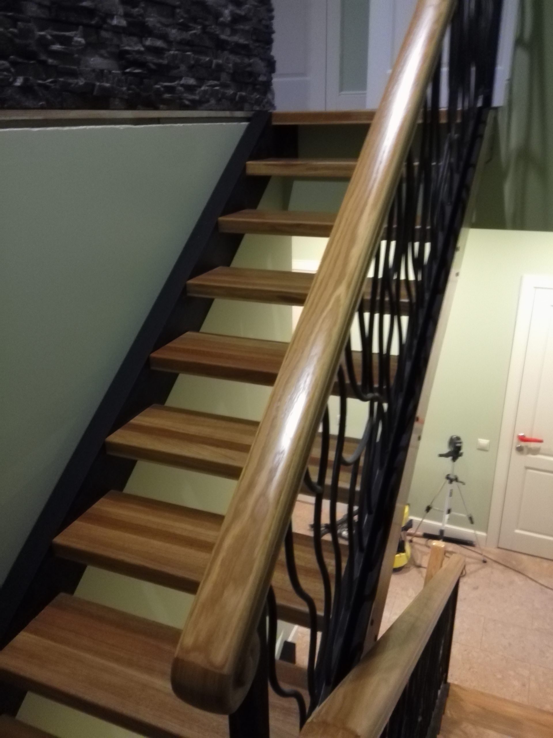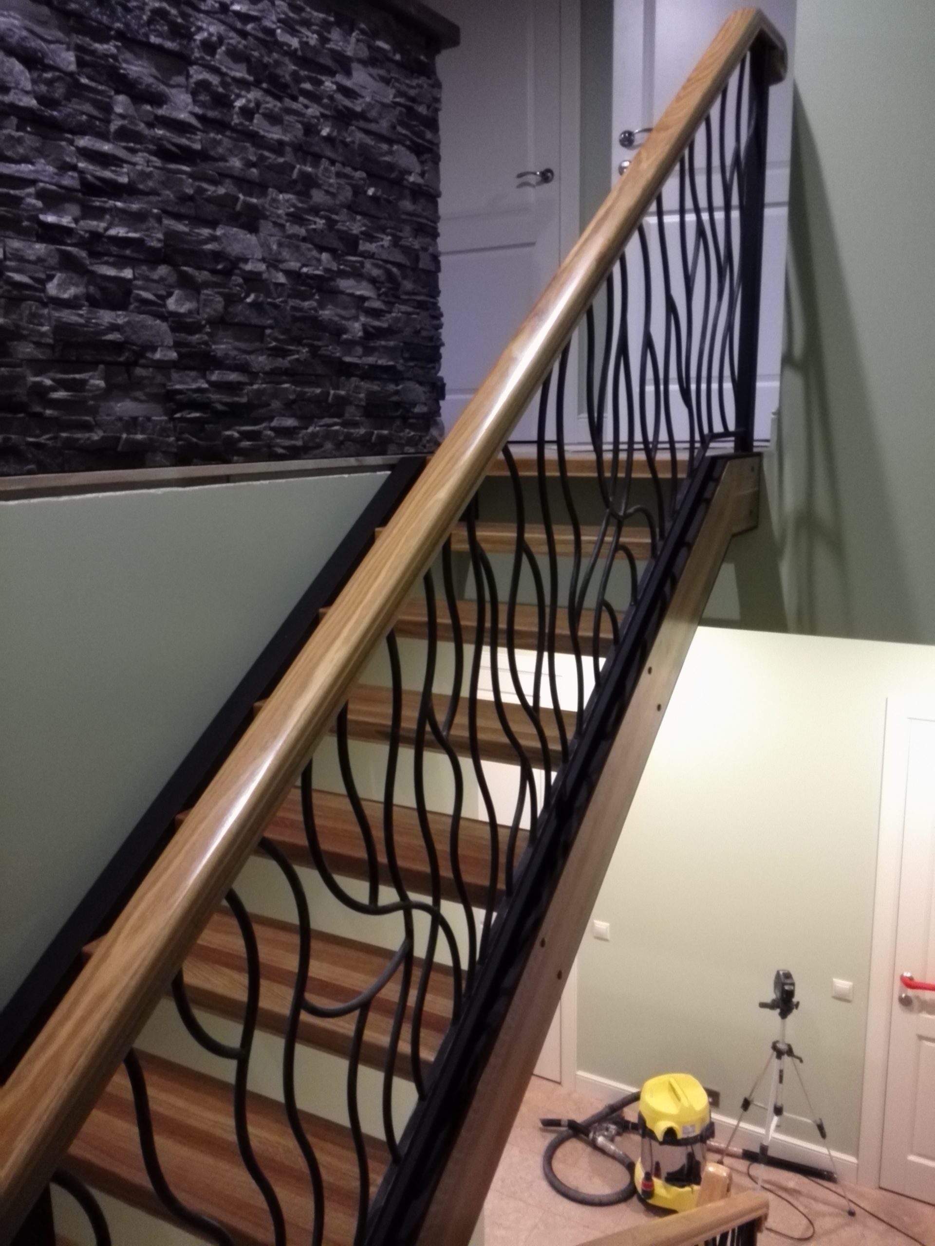 Закончили производство и установку кованых комбинированных перил с деревянным поручнем и деревянными ступенями.